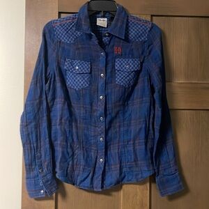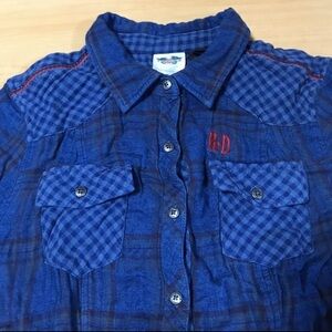 Harley Davidson Western Blue Long Sleeve Cotton Flannel Button Down Size Small