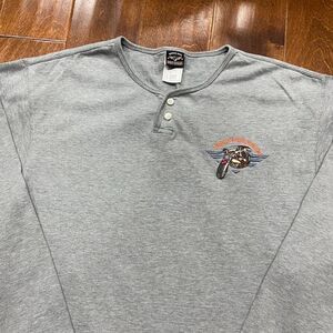 Harley Davidson Wile E Coyote Motorcycle Henley Gray T-Shirt Men's Size Large