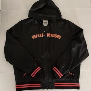 Harley Davidson Windbreaker Womens Size 2X Black Full Zip Pockets Hood Biker