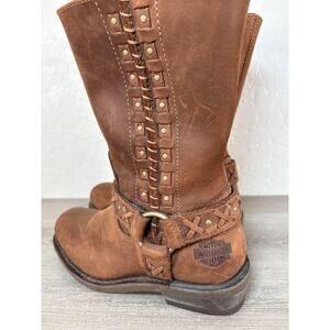 Harley Davidson Womens Brown Suede Leather Auburn Harness Stud Motorcycle Boots