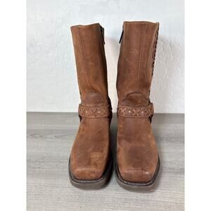 Harley Davidson Wmns 7 Brown Suede Leather Auburn Harness Stud Motorcycle Boots