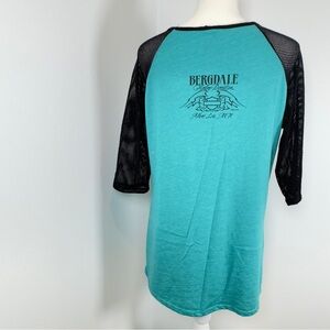 Scroll pattern, round neck, mesh (fishnet) 3/4 sleeves. Size extra large. 2015 Bergdale in Albert Lea, MN.