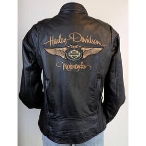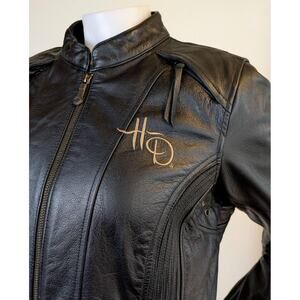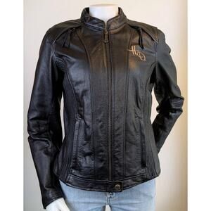 Harley Davidson Womens 110th Anniversary Black Leather Jacket Medium Embroidered