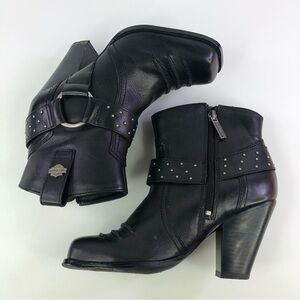 Harley Davidson Womens Black Leather Ankle Boots Size 7 D85024