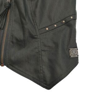 Harley Davidson Women's Black Studded Tassel Zipper Open Crochet Vest Large