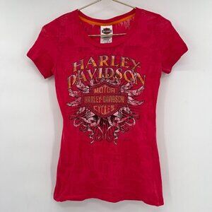 Harley Davidson Women's Embellish Short Sleeve Pink Graphic T Shirt M
