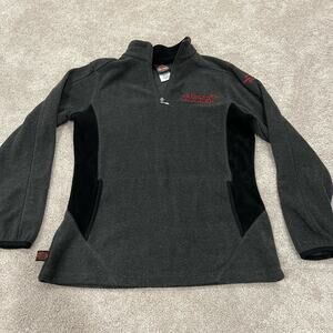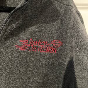 All orders ship within 1-3 business days. This women's fleece quarter zip is made by Harley Davidson. The color is grey. Fabric is 100% polyester. Size is large. Condition is very good. Make me an offer!