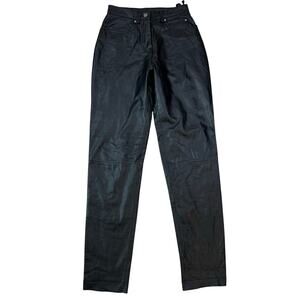 Harley Davidson Women’s Black Genuine Leather High Waisted Straight Leg Pants. Originally labeled a size 4 and I included more measurements below for the perfect fit. High quality and in good condition- no flaws. 100% genuine leather exterior with 100% polyester lining. Zipper fly with button closure, straight leg, high waisted fit. Raw hem.