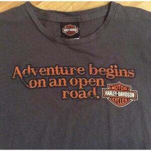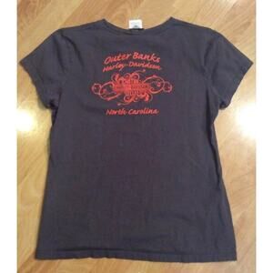 Outer Banks North Carolina Harley Davidson Women's size large "Adventure Begins on the Open Road" graphic t-shirt. In excellent condition from a smoke free home.