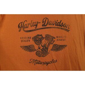 Harley Davidson Womens Medium Faded Spell Out Script Motorcycle T-Shirt Orange