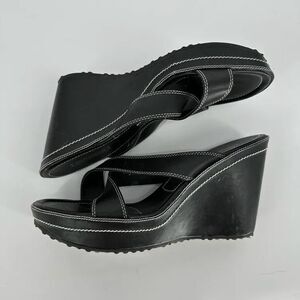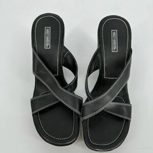 Harley Davidson Women's Size 10 Wedge Sandals Black Leather Slip On Platform
