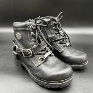 Harley Davidson Womens Size 6M Tegan Lace Up Leather Boots D84424 Black