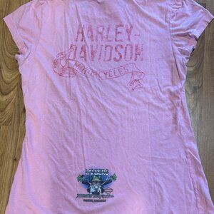 Harley Davidson Women's Size M Front Eagle Logo W/Rhinestones Pink T-Shirt