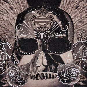 Harley Davidson Womens Size S/M Fringed Embellished Onyx Skull Long Sleeve Cardigan Gray