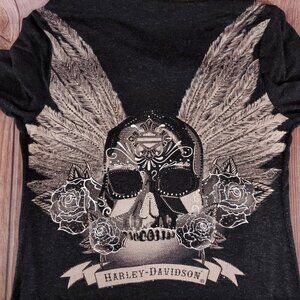 Harley Davidson Womens Size S/M Fringed Embellished Onyx Skull LS Cardigan Gray