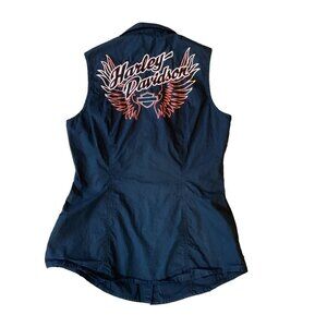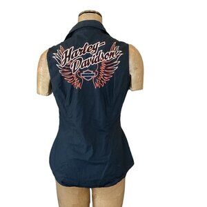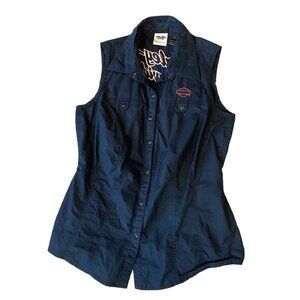Harley Davidson Women's Snap Sleeveless Logo Shirt Black Sz M #141R