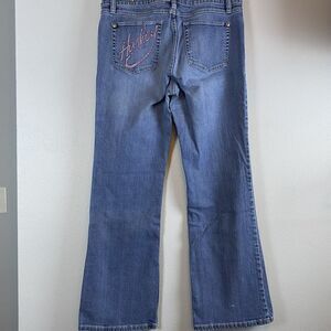 Harley Davidson Women's Sz 14 Jeans Pink Embellished Pockets Denim Straight Leg