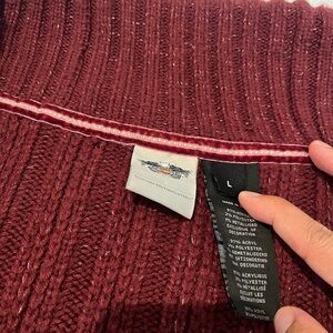 Harley Davidson Womens Sz L Red Shawl Collar Cardigan Sweater Asymmetrical Zip.
