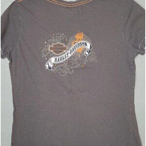 Harley Davidson Womens T Shirt Embroidered front/back Logo Las Vegas Size L