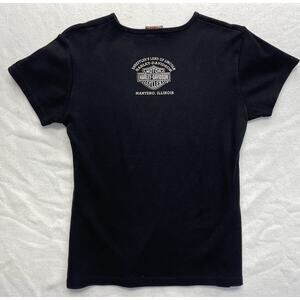 Harley Davidson Womens Top Tee Black Embelished 105 Years Illinois Sz L
