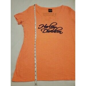 Harley Davidson Womens V Neck Burnout T Shirt XXL Neon Orange