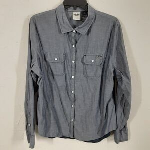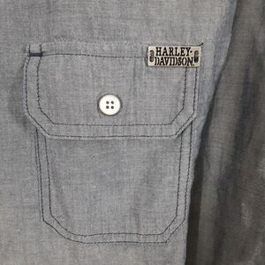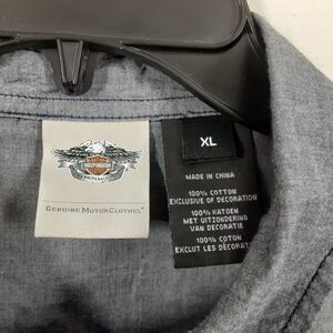This Harley-Davidson women's top in size XL is perfect for anyone who loves Western, Biker, and Motorcycle themes. The blue paisley pattern adds a touch of style to the long-sleeved collared shirt. The snap closure makes it easy to wear, and the 100% cotton material is both easy to care for and suitable for all seasons. The top also features pockets for added convenience. It's a button-up shirt with a regular size type, and it's pre-owned.