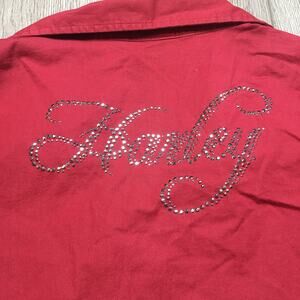 Harley Davidson Womens Zip Up Sequined Spell Out Logo Long Sleeve Top Red 1W