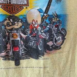 Harley Davidson X Looney Tunes Yellow Moto Graphic Shirt 2015 2010 Beach Racing