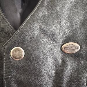 Harley Davidson Youth Black Leather Vest Snap Button Closure Childs Size Medium