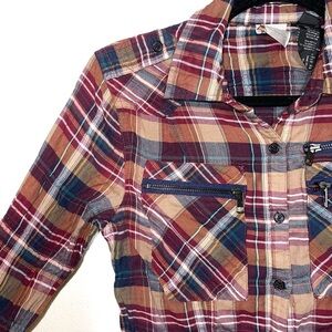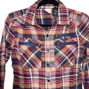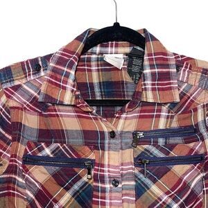 Harley Davidson Zipper Pocket Plaid Graphic Button Down Shirt Small Women’s