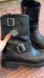 Could also fit a women’s 9.5-10 has some damage where the leather is flaking off unfortunately but still in good wearable condition. Cool biker look!