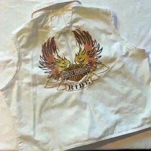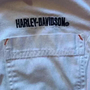 Harley Davidson cotton embroidered sleeveless button down shirt. In excellent pre loved condition. Size 2W. Measures 24” across the chest & 23” long.