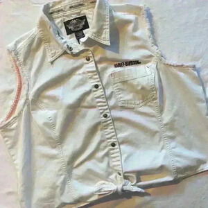 Harley Davidson cotton embroidered sleeveless button down shirt