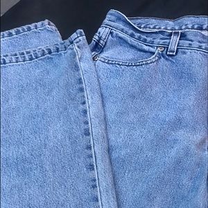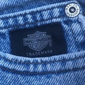 Women’s Harley Davidson denim jeans in size 10. Inseam 29” as shown, flat lay 16” at waist. Bootcut and hemline is intact as shown in pics. Medium blue in color, with awesome patch on back- these jeans get a lot of attention! Good for Sturgis!!