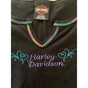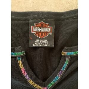 Harley Davidson rainbow top 90s long sleeve black womans large