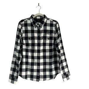 Harley Davidson Wome's rustic flannel plaid shirt Size M Embroidered western cabin core