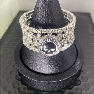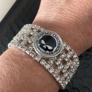 Sparkling silver rhinestone bracelet with Harley-Davidson logo. Perfect for adding a touch of glam to any outfit.