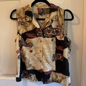 Harley Davidson women’s L map sleeveless cropped button down shirt