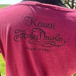 Back side has “Kauai, Harley Davidson, Kauai, Hawaii”