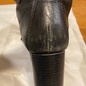 Black Harley Davidson women’s boots. Size 7. Has side zippers. Boot show scuffing marks. Somewhere on the buckles.