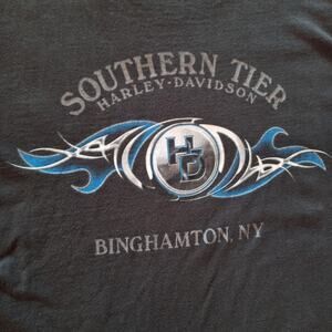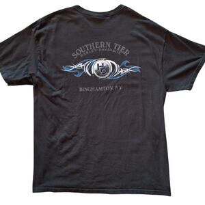 in very good condition made in USA 2004 Y2K vintage harley davidson Binghamton New york front and back double sided graphic print tee mens size XL with chrome Lightning design super cool
