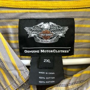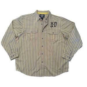 Harley Davidson y2k style embroidered striped casual button down 2XL. Bikercore