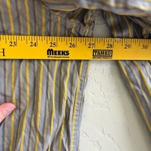 Elevate your style with the Men's Striped Shirt. Featuring a classic brown and yellow stripe design, this shirt offers both comfort and sophistication. Perfect for any occasion.