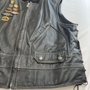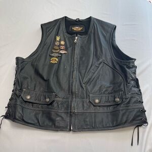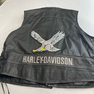 Harley Davidson Black Leather Embroidered Eagle Vest Size XXL Regular