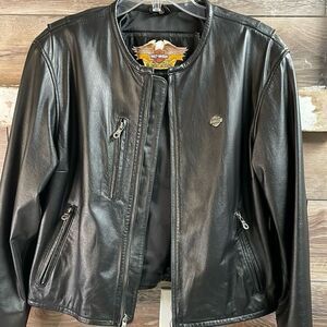 Harley Davidson Womens Leather Motorcycle Jacket Embroidered Logo Size XL Vtg