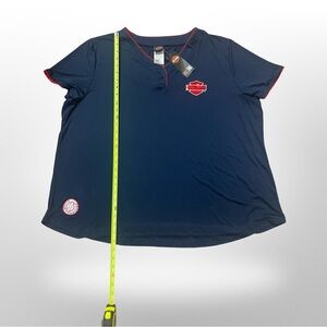 *Harley Davidson*Women's Sz 3XL●Navy Blue/Red Jersey TypeBlouse Sequin LOGO