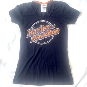 Harley Davidson’s women’s navy embellished short sleeve T-shirt Sz Medium