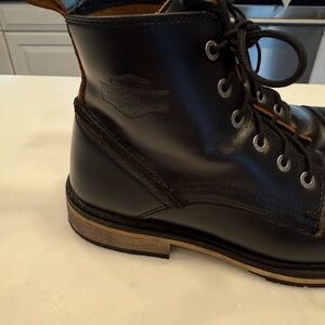 Excellent like new condition. Men’s Harley Davidson black leather lace up boots. Embossed logo, lace up, riding boots. Size US 10 EU 43. MSRP $198