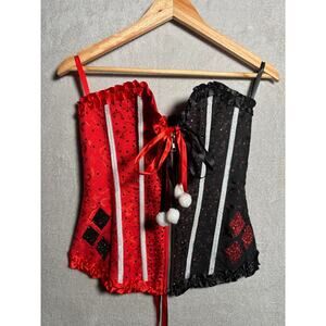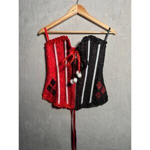 Harley Quinn Corset Costume Batman DC Red Black Womens Size Large