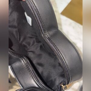 Harley Quinn Heart-Shaped Black Red & gold tone Hand bag with crossbody strap.